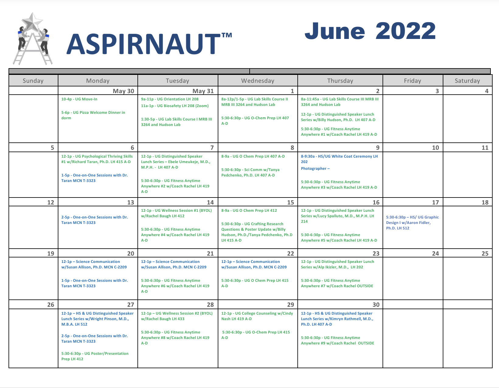 As I would soon learn, the program’s hours were composed of scientific writing lectures, poster crafting sessions, psychological thriving skills, everyday fitness training, health and wellness sessions, luncheons with distinguished honorary speakers, and many more. These enrichment events were to be prioritized by the program directors, and the research hours must be scheduled around such events.