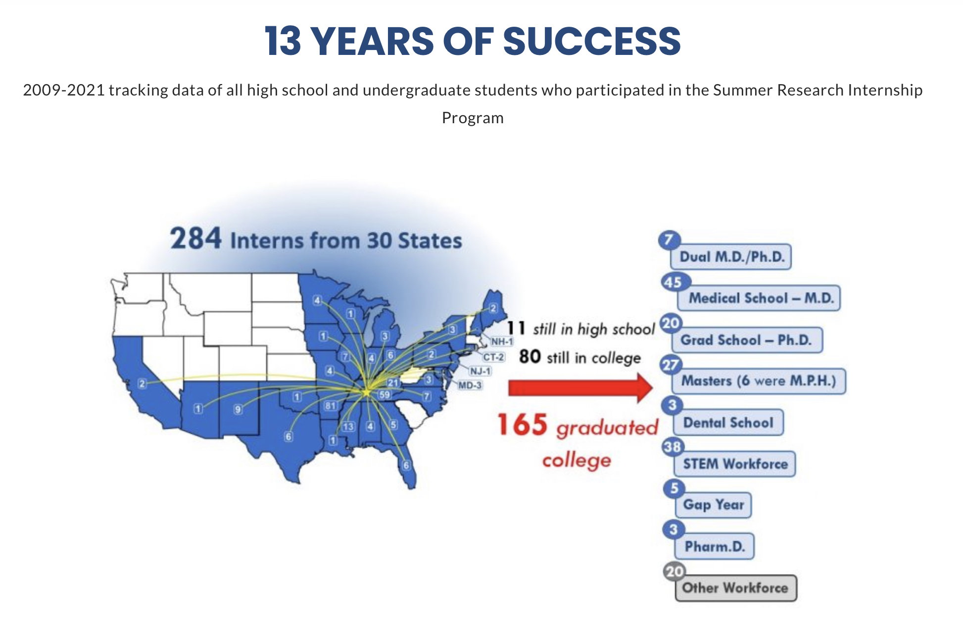 Over time, this generous initiative of the Hudson’s had made a huge difference on school children and has inspired many young students to pursue studies and careers in STEM. The geographic diversity and demographics of internees over thirteen years of collected data (2009-2013) can be viewed bellow.